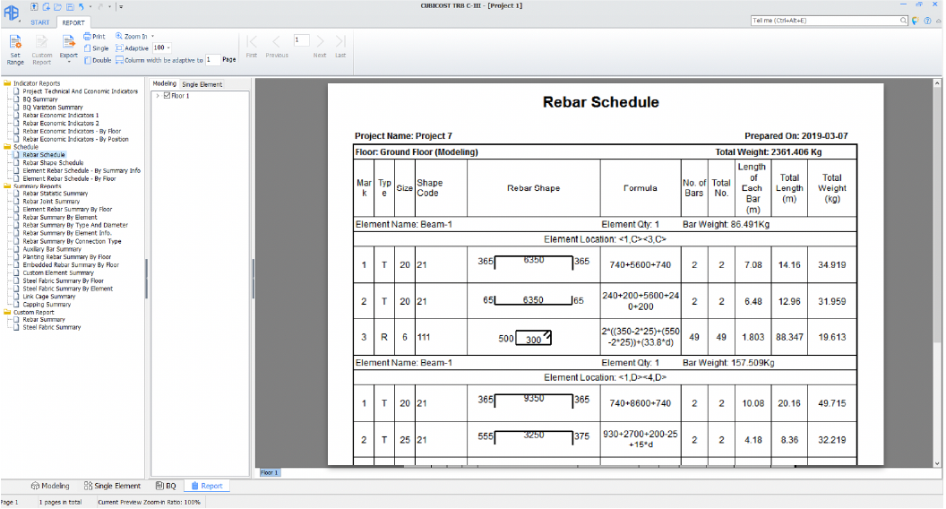 Built-in customisable report templates for displaying rebar quantities and comparisons, enable easily exporting to excel for further adjustment to cope corporate needs