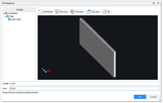 2. Select Pick Line or Pick Area, and then specify the line or area that you want to measure on entities.