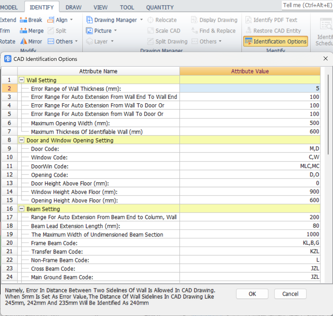 Step 1: Click CAD Identification > CAD Identification Options in the menu bar, and CAD Identification Options dialog box pops up.